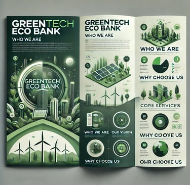Creating a pamphlet for GreenTech Eco Bank to provide an overview of its mission, vision, and services can be a powerful way to communicate the bank’s goals and offerings. Below is a text-based layout for a pamphlet: